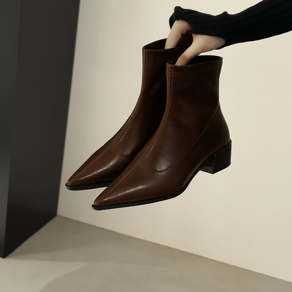 Damen Slip-On Stiefeletten – Spitzer Zehenbereich & Hoher Absatz
