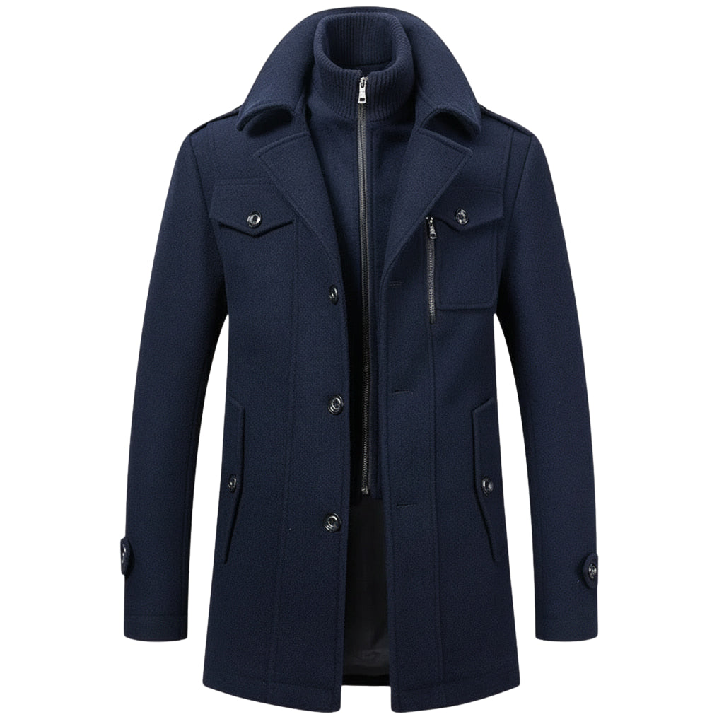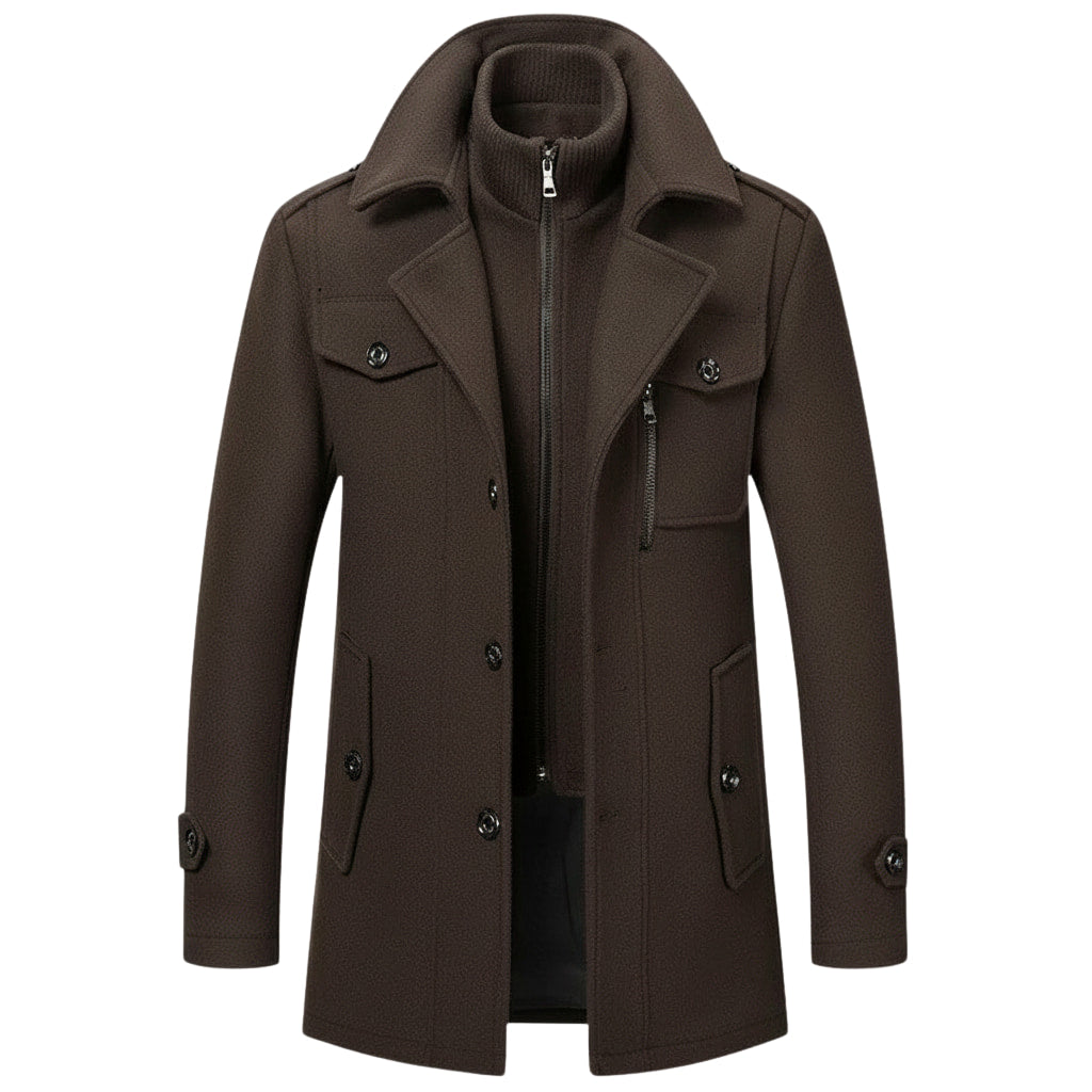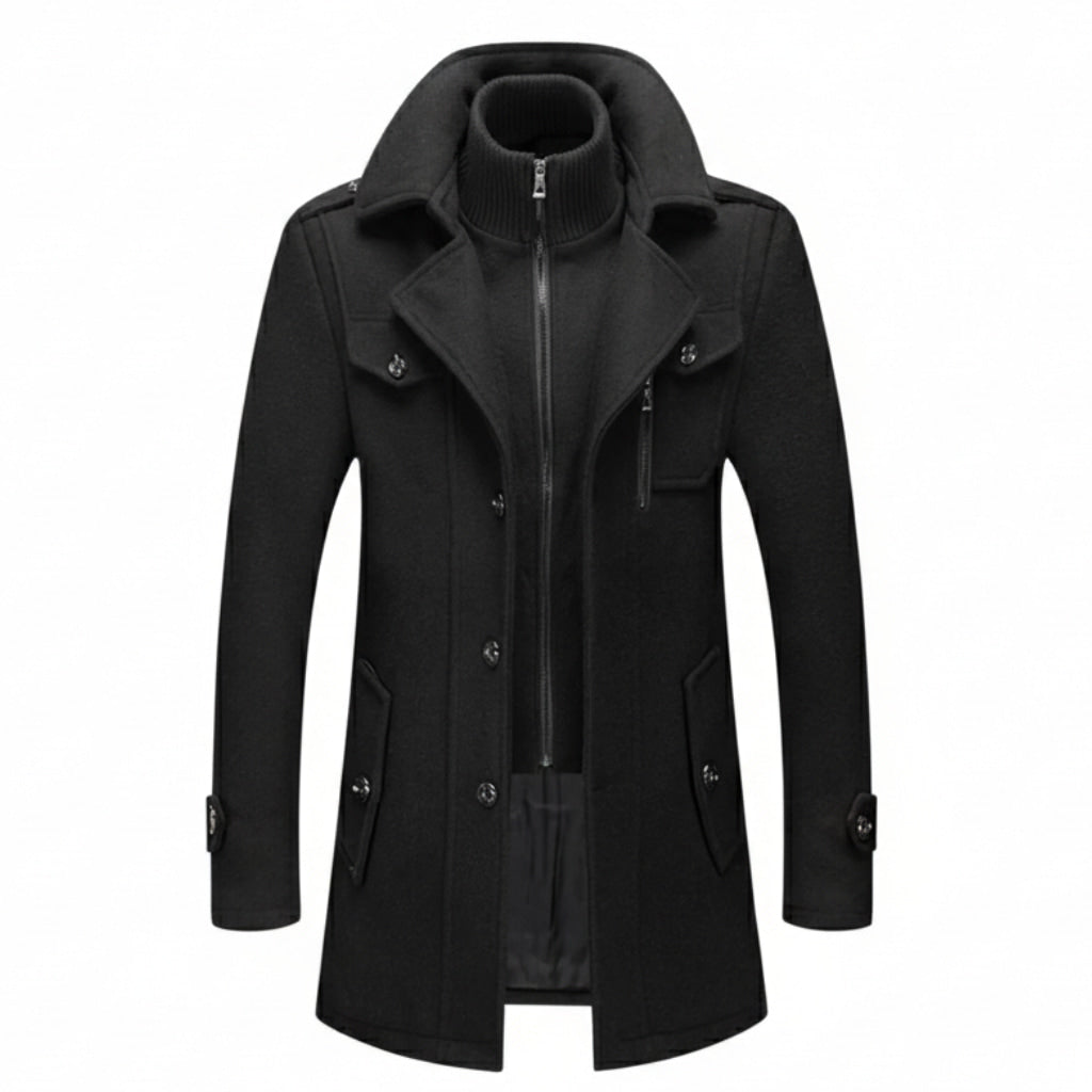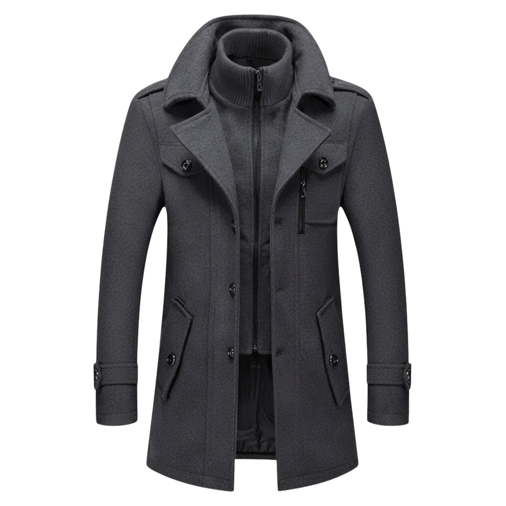 Herren Doppelkragen Wintermantel - Mit Reißverschluss und Knöpfen