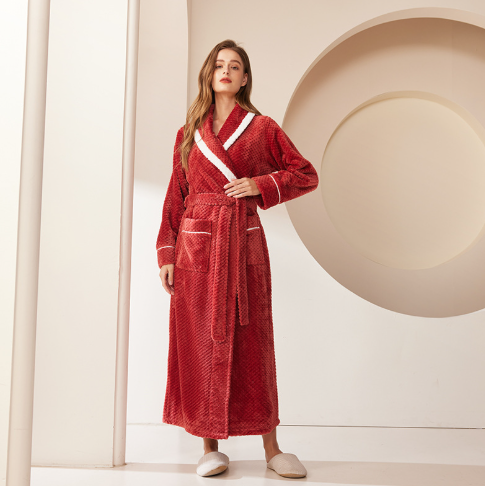 Unisex Schalkragen Morgenmantel - Langer Weicher Strukturierter Bademantel