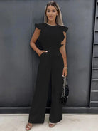 Damen-Jumpsuit mit weitem Bein - Hohe Taille mit Rüschenärmeln