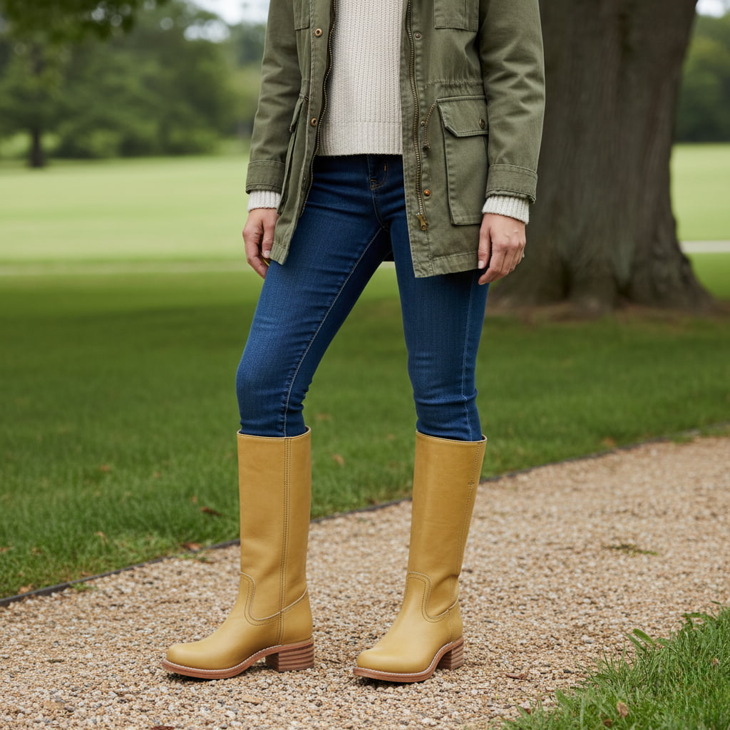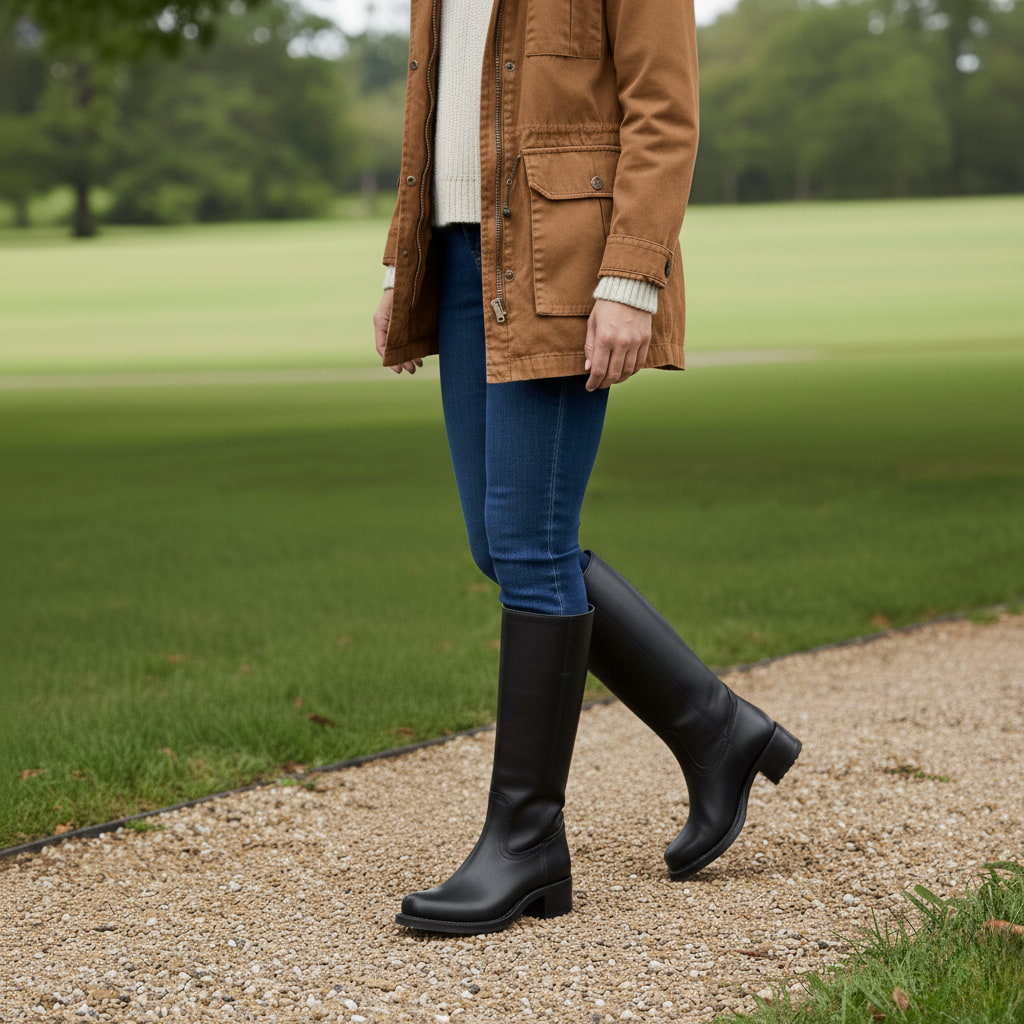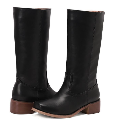 Damen Kniehohe Stiefel – Mit Seitlichem Reißverschluss und Hohem Blockabsatz