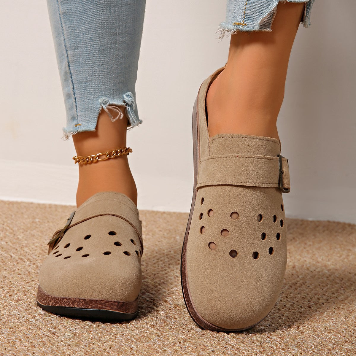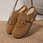 Damen Wildleder Clogs - Slip On Stil mit Schnallenriemen