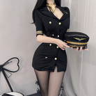 Dame Sort Halloween Stewardesse Mini Kjole - Guldknapper og Reverskrave