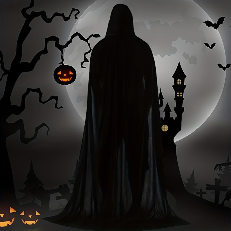 Tag din skygge. Sikr dig Unisex sorte Halloween hætteklæde kostume til dit perfekte kostume i dag!