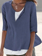 Damen Leinenbluse - Relaxed Fit & Geschlitzter V-Ausschnitt