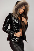 Erregen Sie Mühelos Aufmerksamkeit mit dieser Damen Schwarz Glänzend Steppjacke