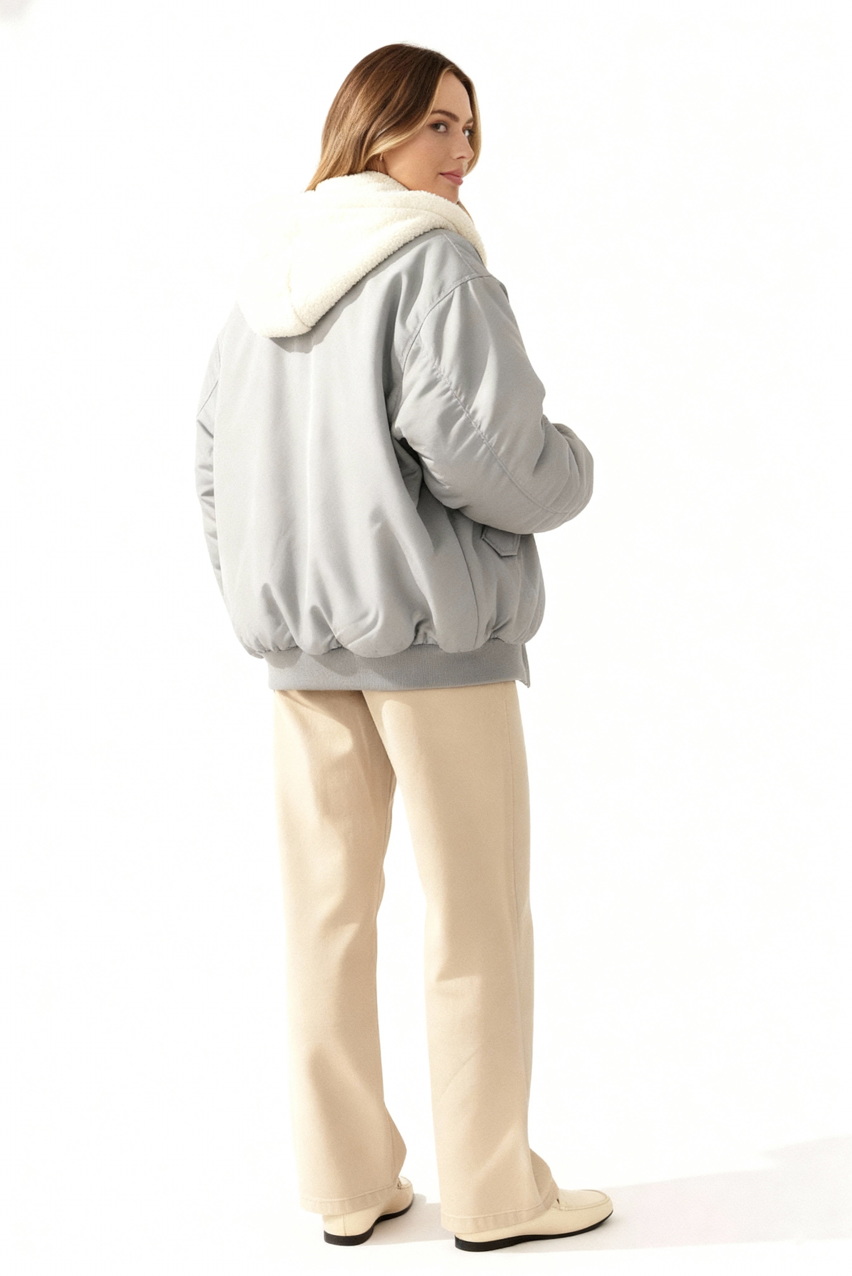 Damen Oversized Winterjacke - Wendbar mit Kapuze