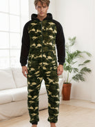 Herren Bedruckter Loungewear Onesie - Kapuzen-Pyjamaanzug