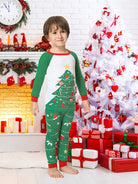Unisex Grünes Familien-Pyjama-Set – Weihnachtsbaum-Print mit Rundhals