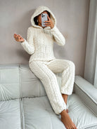 Damen Creme Texturierter Kapuzen-Onesie - Reißverschluss Weiche Loungewear