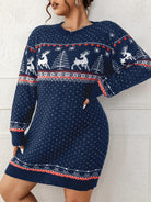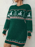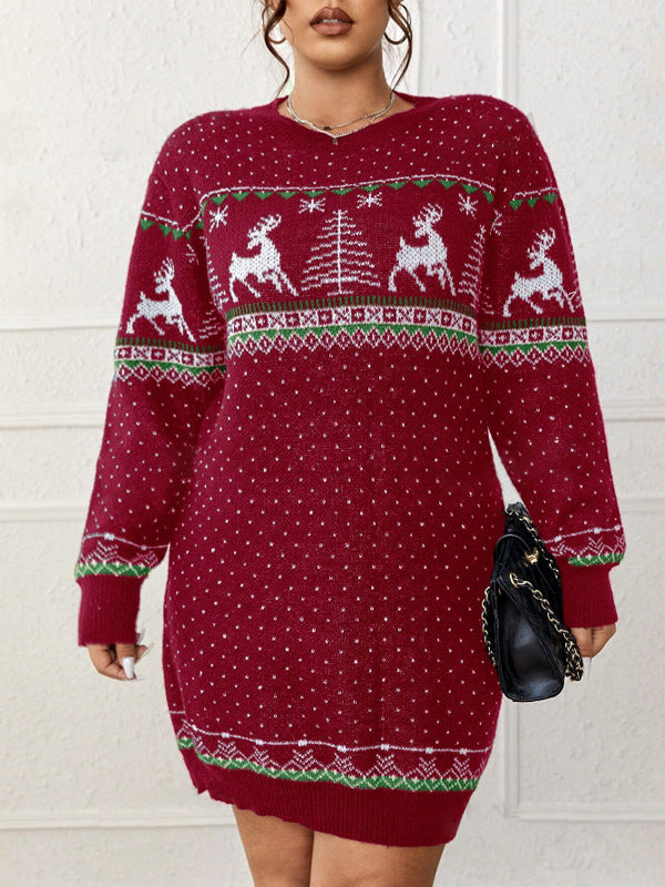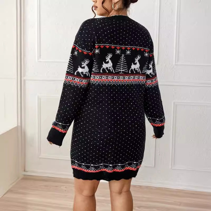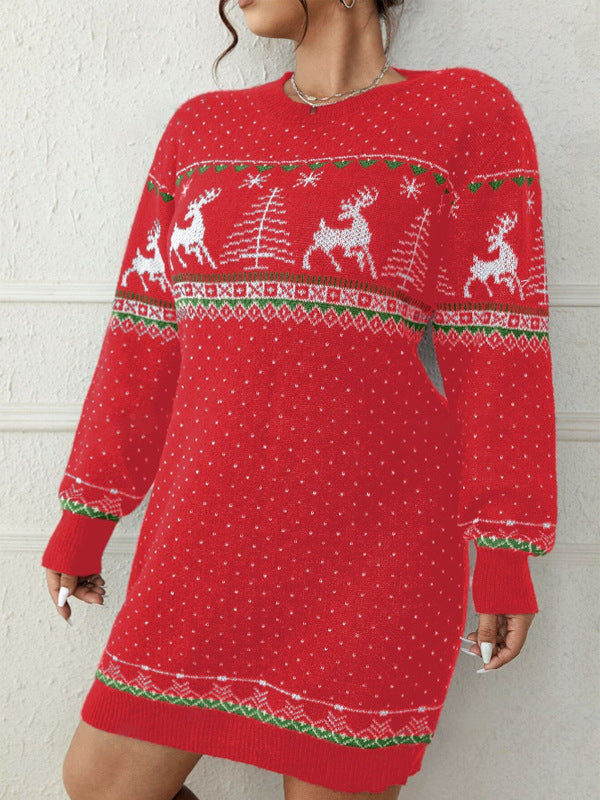 Damen Weihnachts-Strickkleid - Rentier und Tannenbaum Muster