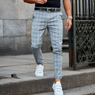 Bringen Sie einen Hauch moderner Klasse in Ihre tägliche Garderobe mit einem Stück, das die Brücke zwischen traditionellem Design und urbaner Schneiderkunst perfekt schlägt. Diese Herren Karo-Hose ist ein Meisterstück zeitgenössischer Herrenmode und bietet eine präzise Slim-Fit-Passform, die in jeder hochkarätigen Umgebung für eine scharfe, stromlinienförmige Form sorgt. Das markante geometrische Muster dient als anspruchsvoller Blickfang und garantiert eine raffinierte Ästhetik, die sich deutlich von Standard-Basics abhebt. Gefertigt mit Fokus auf klare strukturelle Integrität, besticht diese Hose durch einen modernen knöchellangen Schnitt, der es Ihnen ermöglicht, Ihr liebstes Schuhwerk zur Geltung zu bringen und gleichzeitig ein gepflegtes Profil zu bewahren. Egal, ob Sie sich in einem Unternehmensumfeld bewegen oder an einer exklusiven gesellschaftlichen Zeremonie teilnehmen, dieses Bekleidung-Essential bietet einen anspruchsvollen Look, der klassischen Charme mit einer Aura von mühelosem modernem Luxus verbindet.