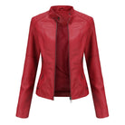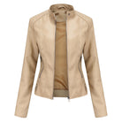 The Women's Slim Moto-Style Jacket is the perfect way to refresh your wardrobe. Its elegant slim fit, combined with a moto-style design and a zipper at the front, offers a sleek and modern look. This jacket is crafted with a smooth texture and a high collar, making it a stylish and versatile layering option for all seasons.