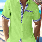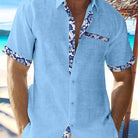 Men's Linen Shirt - Tropical Style with Floral Accents