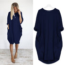 Women’s Oversized Midi Dress - Round Neck with Side Pockets