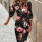 Women's Wrap Midi Dress - Printed with 3/4 Sleeves