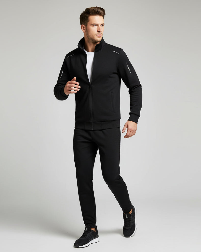 • Premium Two-Piece Set: Includes a comfortable full-zip jacket and matching joggers for a cohesive and athletic look.