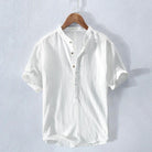 Men's Linen Shirt - Mandarin Collar with Short Sleeves