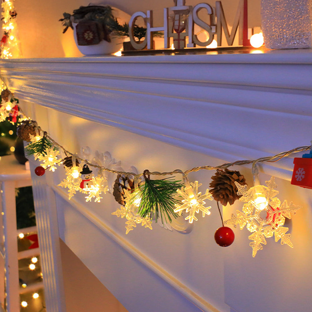 Experimenta un ambiente suave y centelleante con estas Luces LED de Navidad. Perfectas para tu decoración interior, este juego de luces de cadena combina la belleza delicada de los copos de nieve con la textura rústica de los acentos de pino, creando una exhibición armoniosa y cálida. Las luces LED integradas funcionan con batería, ofreciéndote la flexibilidad de colocarlas en repisas, árboles o estantes sin necesidad de un enchufe cercano. Las Luces LED de Navidad son la forma sin esfuerzo de elevar tu estilo de temporada.