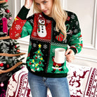 Suéter de punto navideño para mujer - patrón de Papá Noel feo y muñeco de nieve