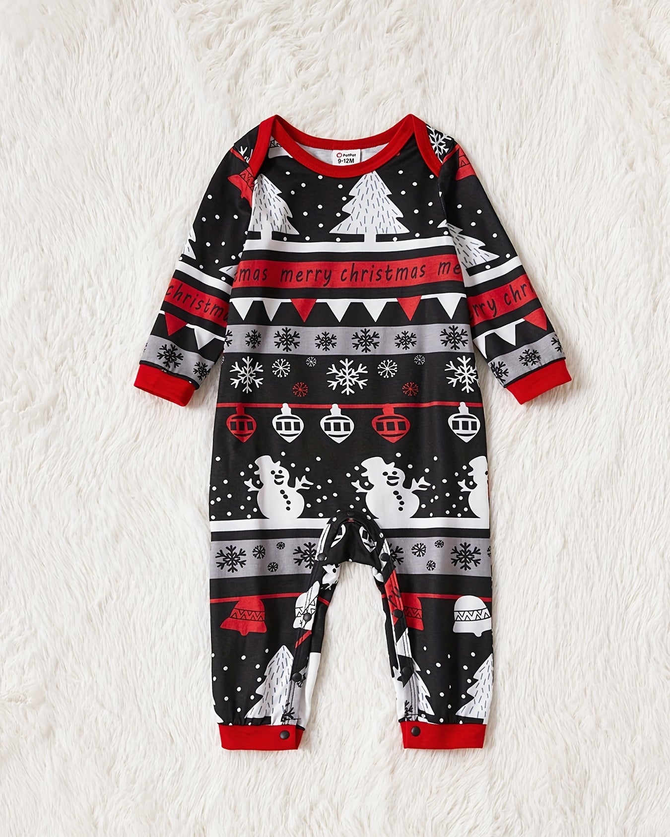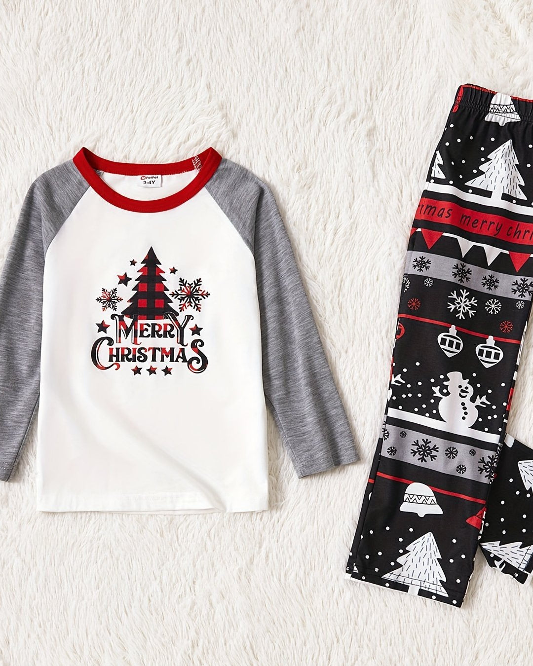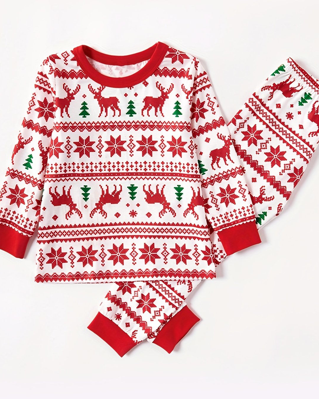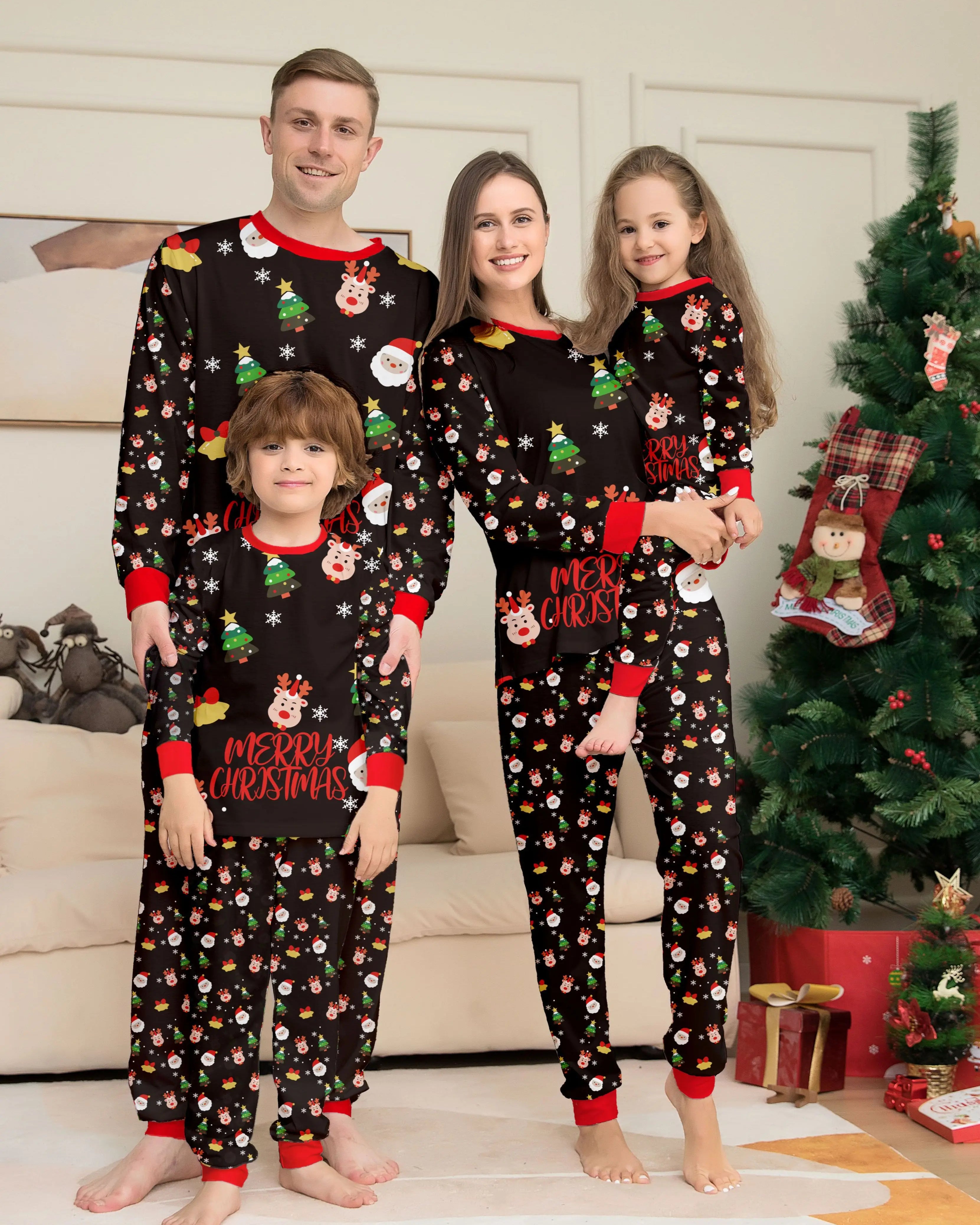 Pijama familiar navideño verde unisex - Motivo de árbol de Navidad y pantalones con patrón festivo