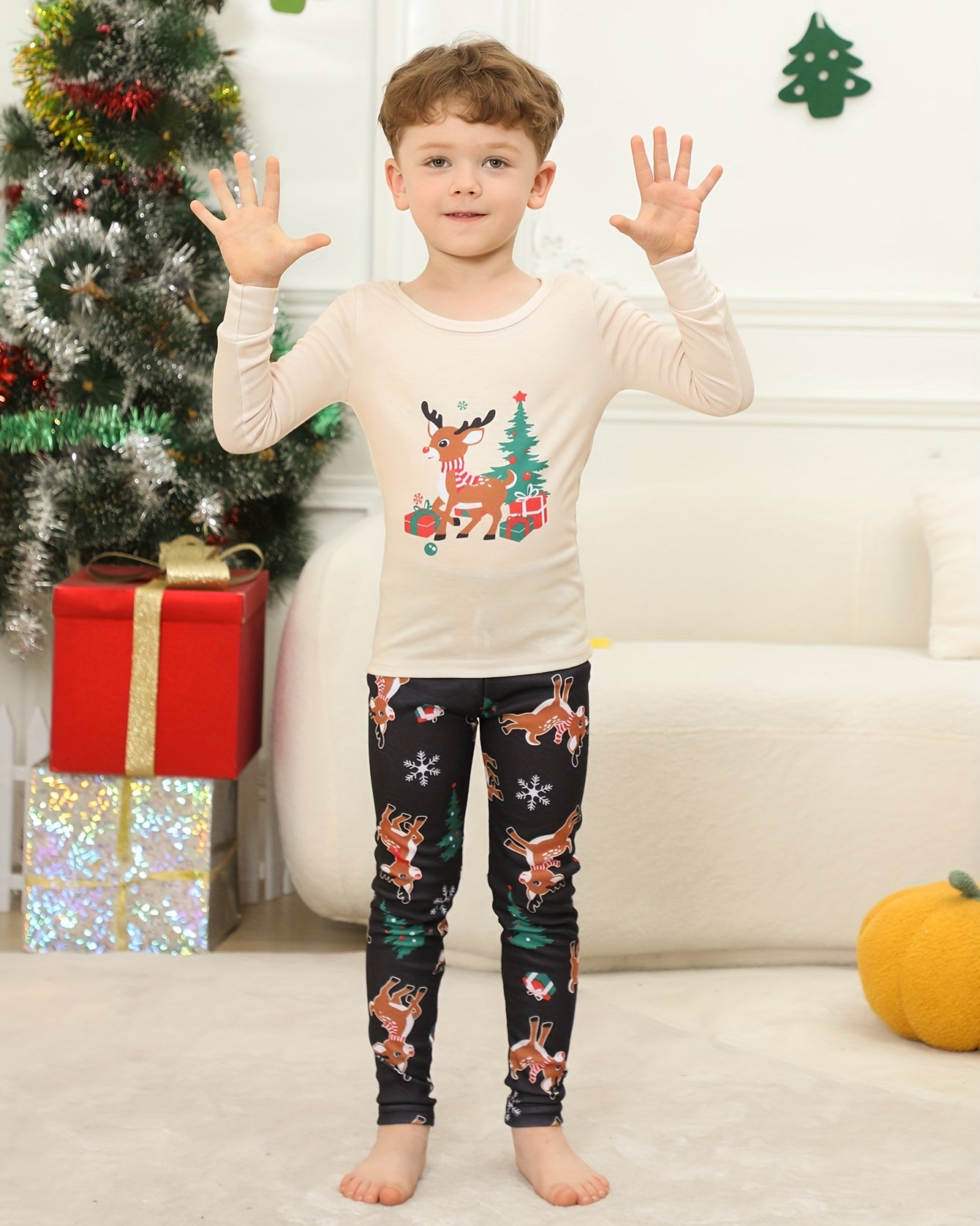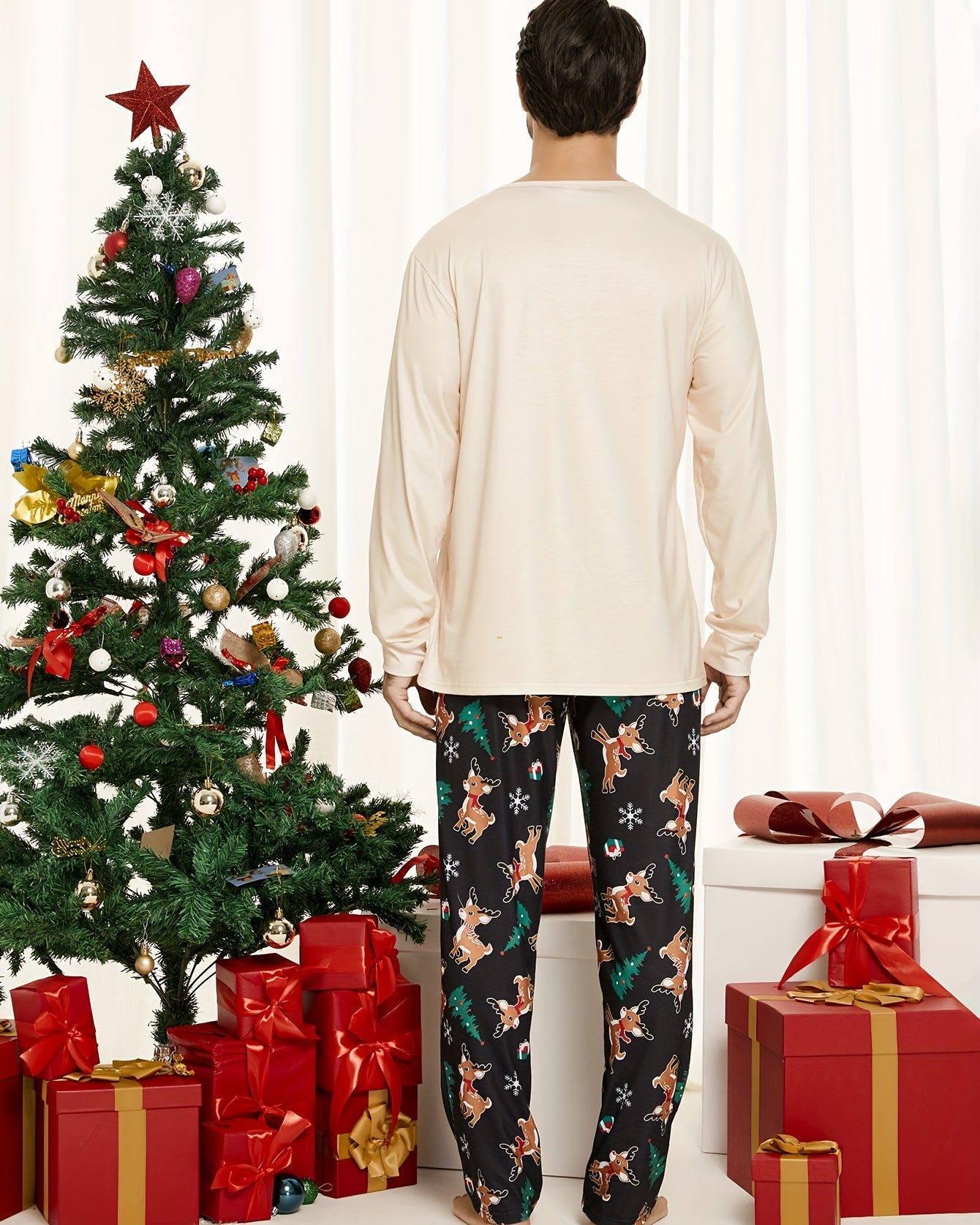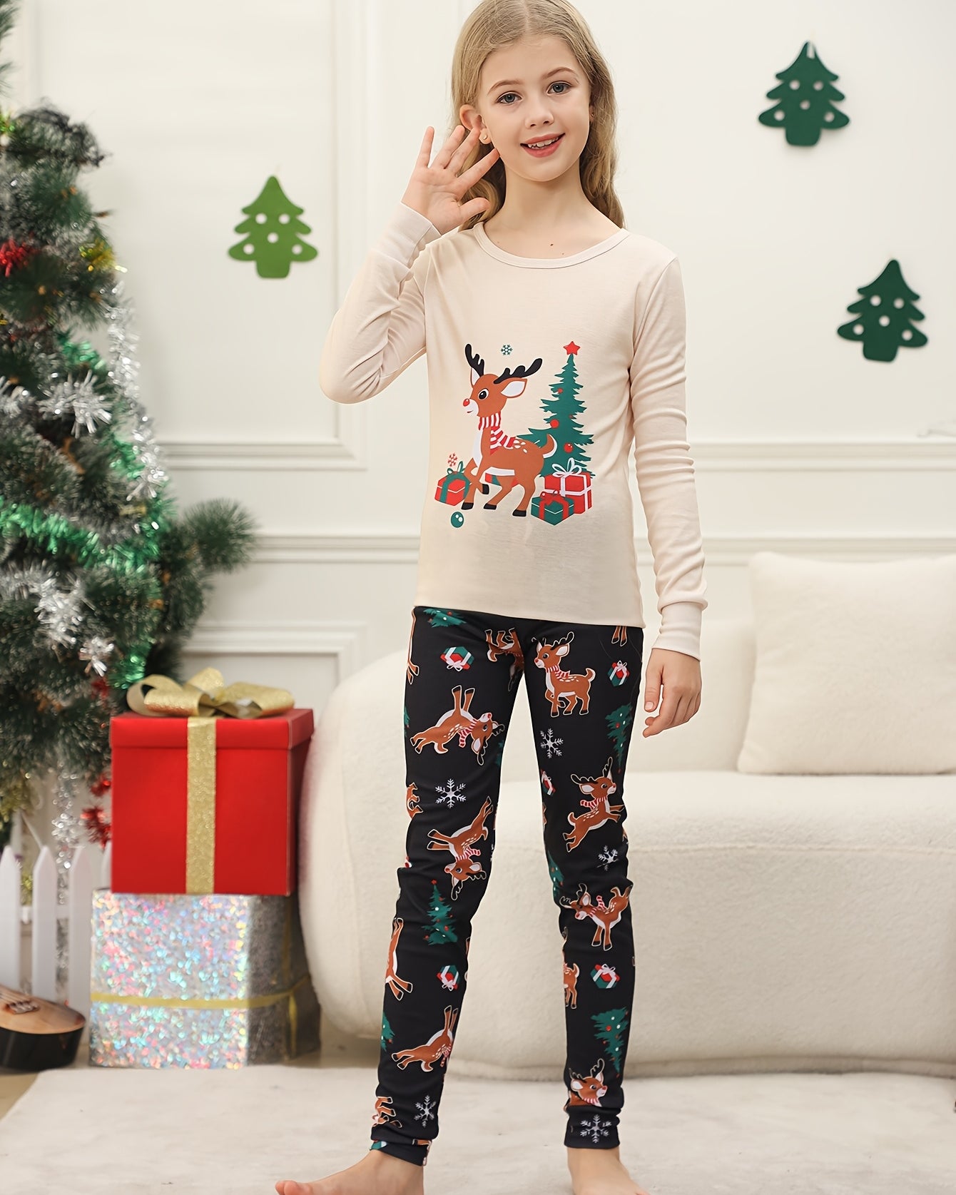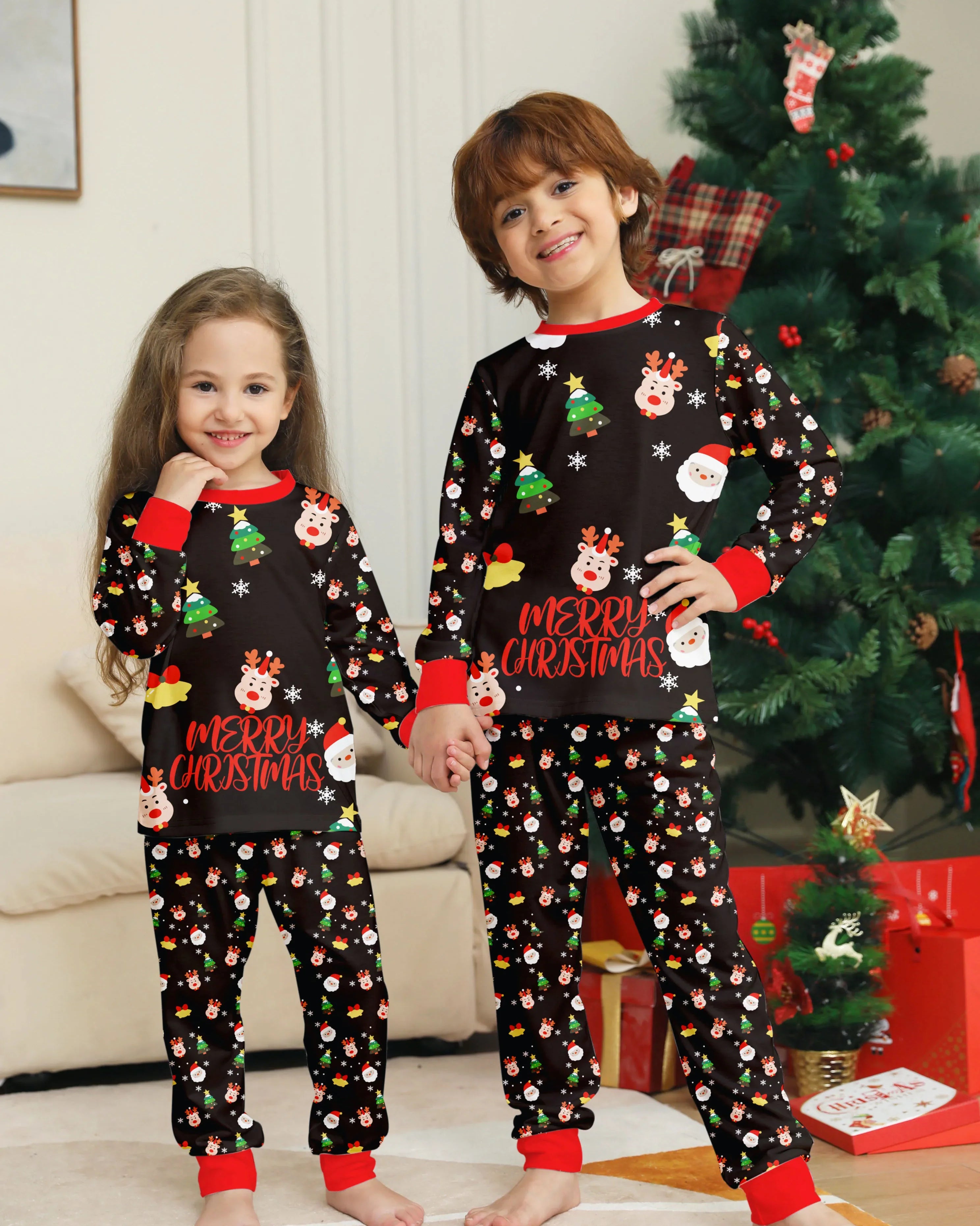 Pijama familiar navideño verde unisex - Motivo de árbol de Navidad y pantalones con patrón festivo