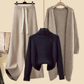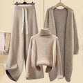 Mejore su guardarropa casual al instante con el Conjunto de Punto de 3 Piezas para Mujer. Este conjunto está diseñado para ofrecer la máxima comodidad sin sacrificar un aspecto cuidado y armonioso, lo que lo convierte en una adición verdaderamente versátil a su armario. Incluye tres piezas perfectamente combinadas: un suéter de cuello alto, unos elegantes pantalones anchos y un cárdigan largo elegante. Fabricado en una textura de punto suave y de alta calidad, este conjunto asegura que se mantenga cálida, relajada y con estilo, ya sea en casa o fuera de ella.