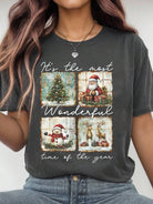 T-shirt natalizio grigio da donna - manica corta con grafiche retrò