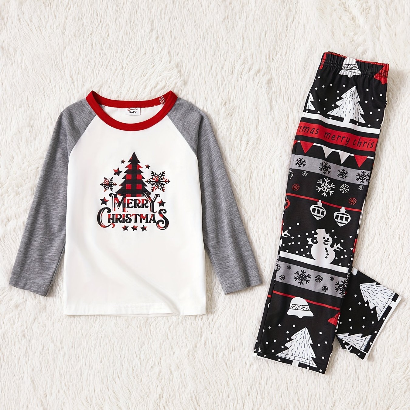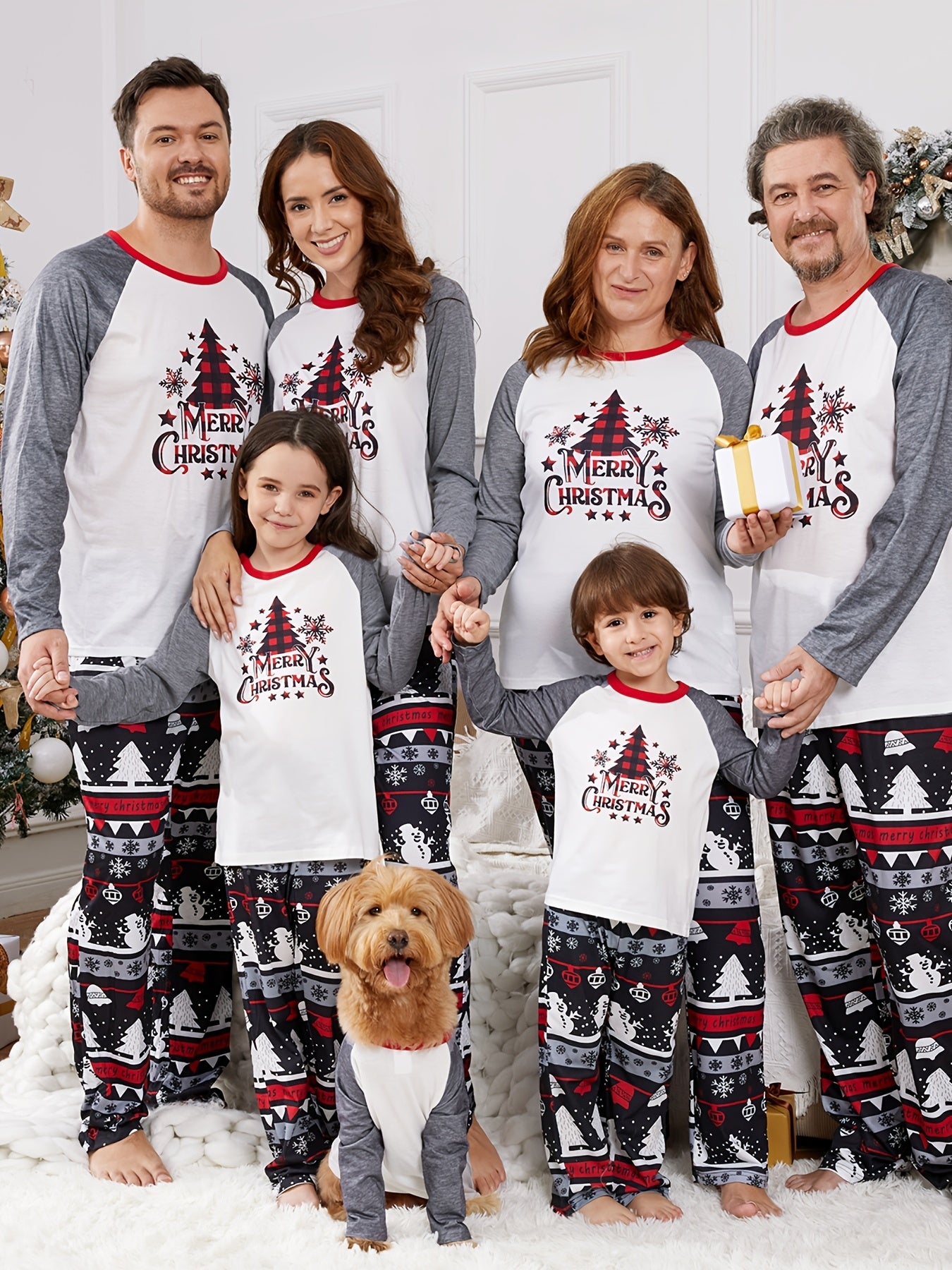 Set pigiama natalizio familiare grigio unisex - maglia raglan e pantaloni con motivo festivo