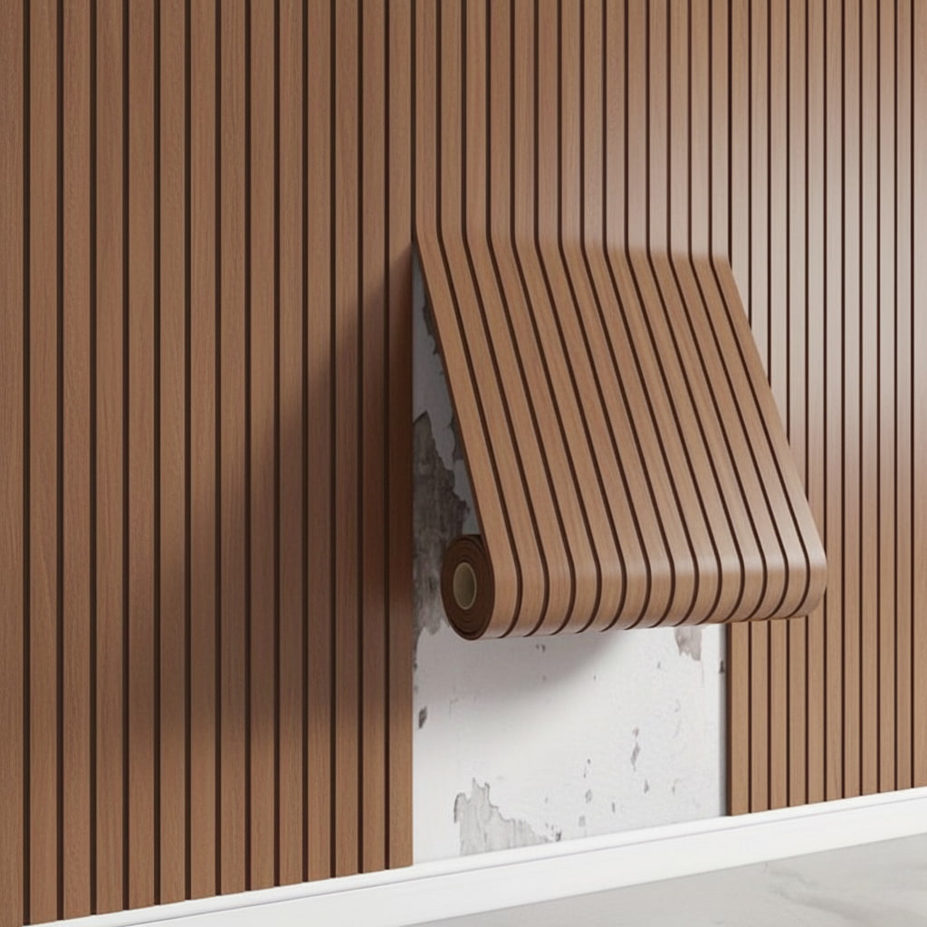 Pannello da parete 3D autoadesivo rotolo - design a listelli effetto legno