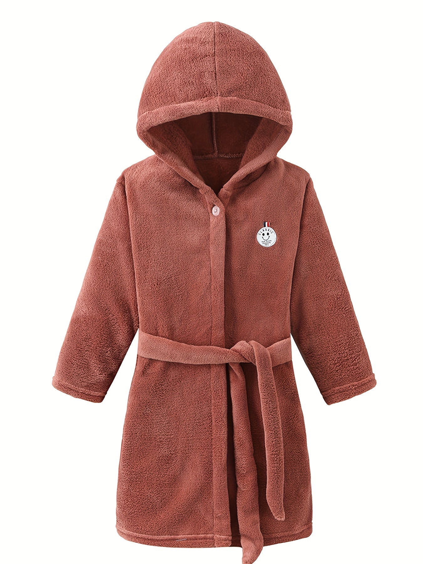 Dziecięcy szlafrok z kapturem z naszywką z postacią - Miękki szlafrok kąpielowy z paskiem