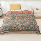 Blumen Überwurf Decke - Wendebar mit Fransen
