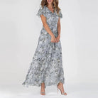Damen-Blumen-Maxikleid - V-Ausschnitt mit Flatterärmeln