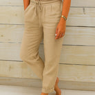 Damen-Leinenhose - Elastischer Bund mit Taschen