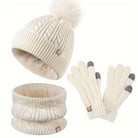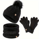 Dam 3-delat vinterset-accessoar - flätstickad mössa, halsduk & handskar