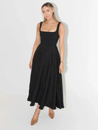 Damen Midikleid - Quadrat-Ausschnitt mit High-Waist-Rock