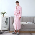 Unisex halskrage morgonrock - lång mjuk strukturerad badrock