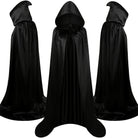 Unisex svart Halloween huva mantel kostym - full längd och knytband