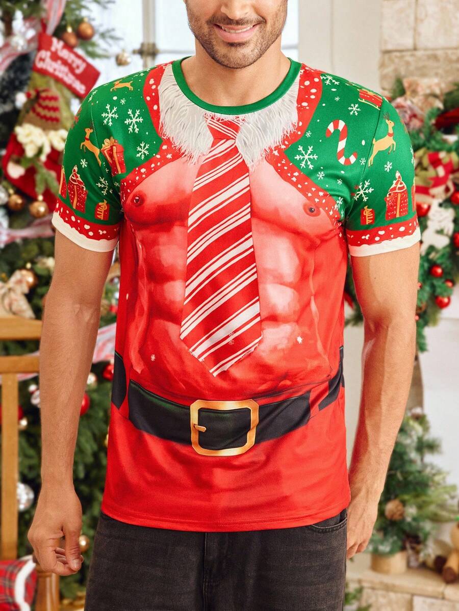 Redo att bli stjärnan på varje julfest? Lägg till en dos muskler och glädje till din festliga garderob. Missa inte chansen att få den ultimata komforten och nöjesfaktorn med Herrarnas Röda Roliga Jul T-shirt.