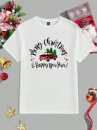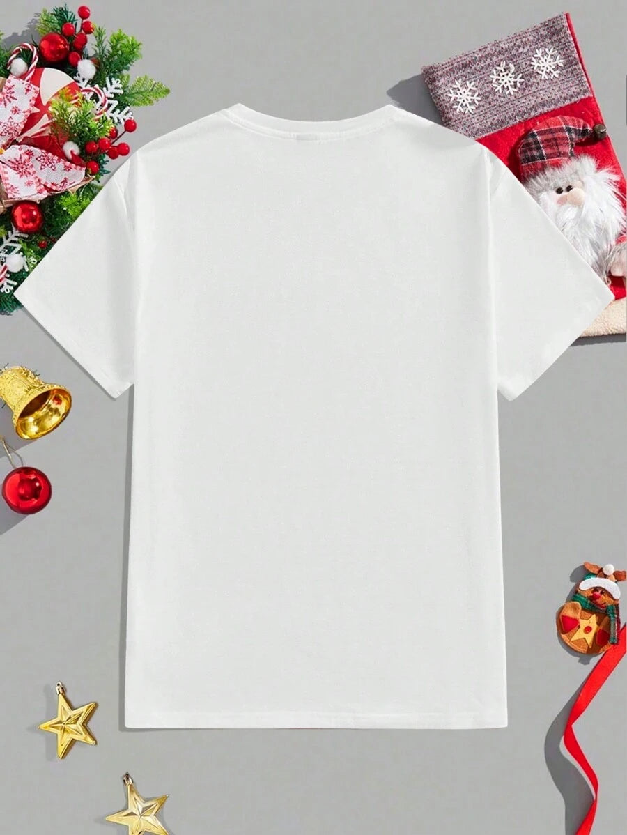 SHEIN Essnce Jul Tomte Röd Rutig Bil Casual Lös Rund Hals Kort Ärm T-shirt, Passar För Sommar, Julklapp