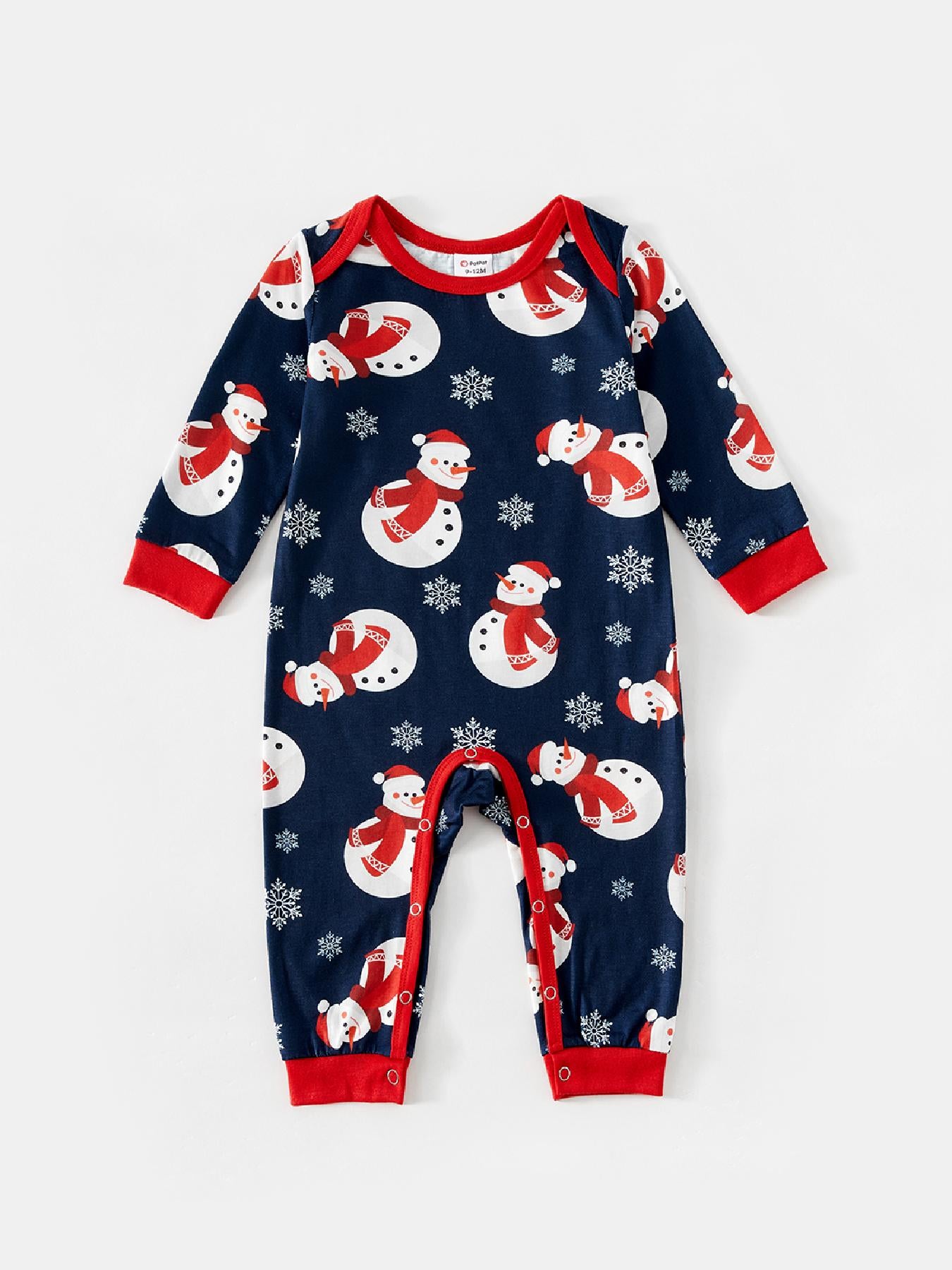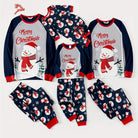 Unisex Blaues Familien Weihnachts-Pyjama-Set - Schneemann-Motiv-Print