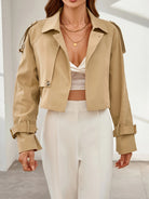 Upptäck en snygg och modern version av en klassiker med denna Dam Kort Khakifärgad Trenchcoat. Designad för att uppgradera din garderob, har denna kappa stilfulla axelklaffar, markanta raglanärmar och en smickrande förkortad passform. De unika spänndetaljerna ger en touch av elegans och erbjuder en tidlös look. Det är ett mångsidigt val för ytterkläder som ger ett perfekt lager för svalare väder samtidigt som din stil är på topp.