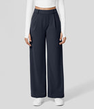 - Plisserad fram: Stilfulla veck ger byxorna en touch av elegans och struktur, vilket ger dem en klassisk, förfinad estetik.