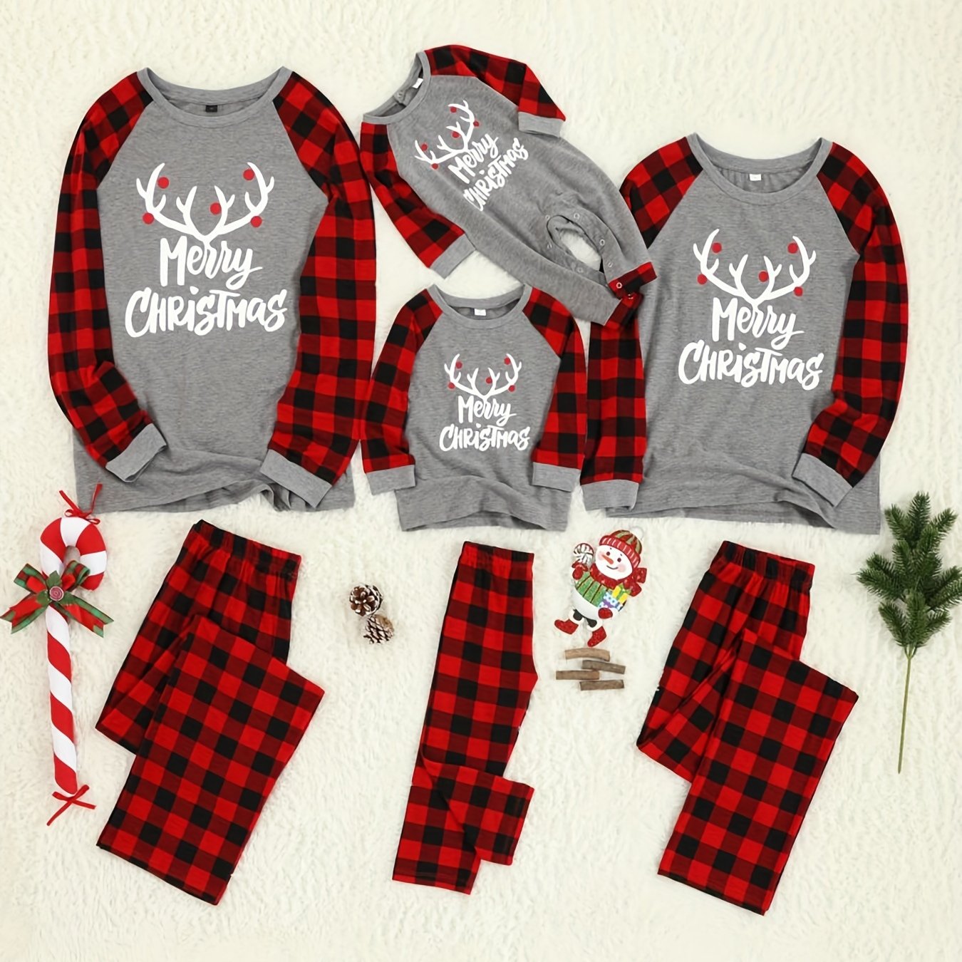 Planen Sie den perfekten Feiertagslook mit dem Unisex Familien "Merry Christmas" Roter Pyjama. Diese lebendige, festliche Bekleidung verfügt über einen feierlichen „Frohe Weihnachten“-Buchstaben-Print, gepaart mit einer charmanten Rentier-Grafik auf dem Oberteil, ergänzt durch traditionelle Plaid-Hosen. Hergestellt mit einer glatten Strick-Textur, gewährleistet dieses koordinierte Set außergewöhnlichen Komfort und Wärme für die saisonale Entspannung. Seine flammbeständigen Eigenschaften bieten entscheidende Sicherheit, sodass Ihre Familie jede Winterzusammenkunft und jeden gemütlichen Abend am Kamin sorgenfrei genießen kann.