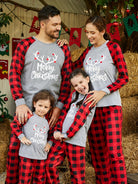 Unisex Familien "Merry Christmas" Roter Pyjama – Rentier-Muster mit Plaid-Hosen